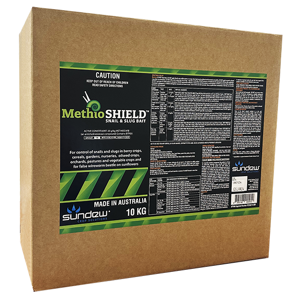 Available in two commercial sizes – a 10 kg carton or a 150 kg steel drum – this Australian-made solution sets a new standard in snail and slug control. Each pellet is a potent force, capable of eliminating up to 30 snails, making it a highly efficient choice for tackling infestations. With its enduring effectiveness in all weather conditions and rapid action, MethioSHIELD leads the way in snail and slug eradication.