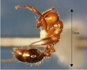 The fire ants are reddish-brown in colour and from 2-6mm in length. They may be confused with the common coastal brown ant but can be distinguished by its aggressive behaviour.