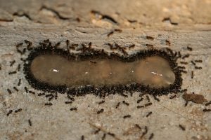 Although pyrethroids have commonly been used for ant control, it is important to understand that any one time less than 10% of the colony might be foraging. So directly spraying foraging trails with a ‘knockdown’ product will have very little colony impact.