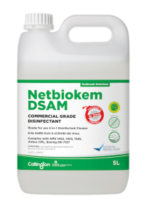 Callington’s Netbiokem DSAM commercial-grade disinfectant has recently been approved by the TGA to make the claim ‘Kills the SARS-CoV-2 (COVID-19) virus in two minutes’ (ARTG no. 336972). The product is based on the active laurylamine dipropylenediamine and was originally developed for aviation use. The use of this advanced surface disinfectant allows the product to be active against an incredibly wide range of organisms, including bacteria, fungi, mycobacteria, yeasts, moulds and all types of viruses, including killing the COVID-19 virus in only two minutes. It achieves these results in both wipe on/wipe o liquid and cold fogging applications.