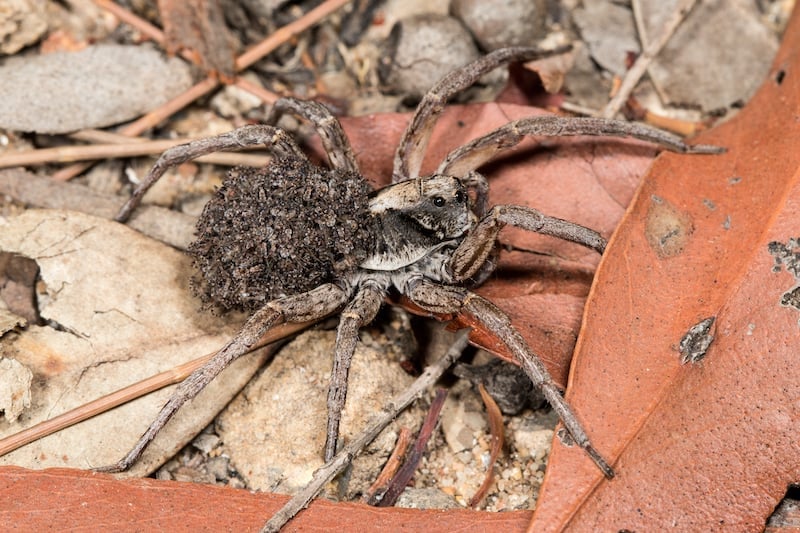 Wolf spiders are known to care for their babies after hatching, with the spiderlings remaining with the mother, hitching a ride on her back for several months until their fat reserves have been used up and they need to start finding their own food.