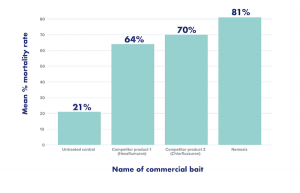 The study results confirmed palatability and efficacy differences between the three commercial baiting systems. The foraging termite workers readily transferred all three baits to the colony members, with lethal effects. In the referenced study, the Nemesis Termite Baiting System demonstrated high palatability and caused the highest termite colony mortality rate with less bait substrate consumed (Figure 1).