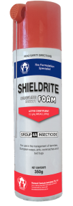 Shieldrite Foam, developed by Sherwood Chemicals, has been designed as a wet fast breaking foam that rapidly breaks down when applied, to leave a residual on the surface. This results in less disturbance to termites and aids in the transfer of the toxicant from infected to uninfected termites.